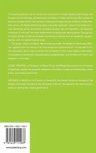 The book - which includes a new monitoring model, the Media for Democracy Monitor, together with the results of its initial empirical implementation - is intended to further discussion about how to monitor the contribution of the mass media to democracy. It is suitable for advanced undergraduates, postgraduates, and scholars who teach and research in this area.