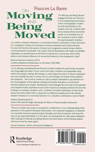 La Barre anchors her contribution in a review of both analytic and nonanalytic sources as they bear on clinical issues. Conversant with the language of posture-gesture mergers, of kines and context analysis, and of body attitudes and self-directed touching, she spans the research literatures of all relevant disciplines, from anthropology to developmental psychology to ethology, from studies of temperament to cross-cultural comparisons of interactive rhythms. Turning to the psychoanalytic domain, she begins by considering the traditionally peripheral role of the body that derived from Freud's own belief that action was often an obstacle to verbal understanding. She then reviews the divergent contributions of Ferenczi and Alexander, of Deutsch and Reich, of Sullivan and Klein, to show how analytic attitudes toward the body were reshaped over the ensuing decades. With the advent of the contemporary relational perspective, she holds, the stage is set for a deeper understanding of nonverbal behaviour both as a source of meaning and as a ubiquitous shaper of therapeutic communication