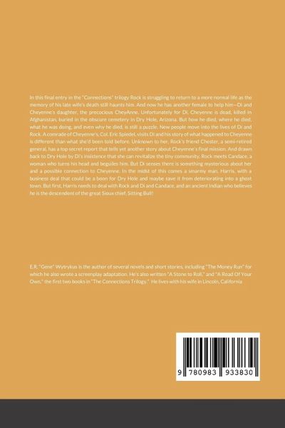 Third entry in the "Connections" trilogy following the characters Rock, Di, & Cheyenne, who first met each other in A Stone To Roll. Their involvement in each others lives continues as they each struggle to deal with the events that brought them together--death and recovery from near-death, and with the events they have become entangled in since their serendipitous meeting. Rock still struggles with memories of his late wife while Di lives the life of a single-Mom, raising her and Cheyenne's daughter, CheyAnne, by herself. But Di is drawn back to her home town, the tiny, deteriorating community of Dry Hole. She entices Rock to follow her and he meets a beguiling woman, Candace, who Di is wary of because of a possible bizarre connection to Cheyenne. He, as we see in flashbacks, becomes involved in a deadly mission in Afghanistan even as awaits his discharge, eager to return home to Di and CheyAnne. Little by little, they are all returning home. E.R. "Gene" Wytrykus is the author of several novels and short stories, including "The Money Run" for which he also wrote a screenplay adaptation. He's also written "A Stone to Roll," (the first book in "The Connections Trilogy") and "A Road of Your Own," the second title in the series. He lives with his wife inLincoln, California