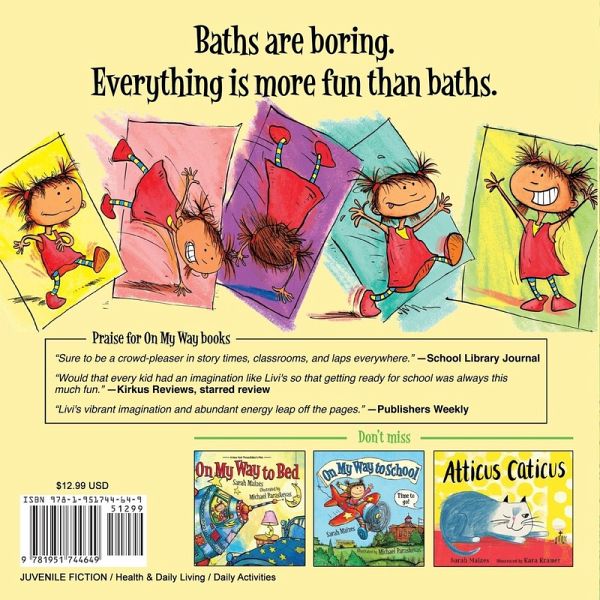 Baths are boring. Everything is more fun than baths. But when Livi's mother hollers "Bathtime!"- a call readers and their parents are all familiar with - her imagination takes her on a journey full of daring obstacles and exciting events. She must battle a snake, rule the world, and escape quicksand, all while her mother waits with the bubbles ready. With delay tactics as creative as this, it's a wonder she ever makes it all the way into the tub. Bringing together a picture book debut, author Sarah Maizes and illustrative veteran, Michael Paraskevas, this funny, fresh book will be a must for every parent who wants to foster creativity while fulfilling the every day necessities. The precocious, emphatic narration... and escalating back-and-forth between Livi and her mother will enliven any read-aloud..." ¿Publisher's Weekly "Sure to be a crowd-pleaser in story times, classrooms, and laps everywhere." ¿School Library Journal for On My Way to the Bath - A Children's Book Counsel Best Book of the Year (2012) - Tennessee Volunteer Book Award Nominee (2012) Praise for On My Way To Bed "...How could dreams live up to this preamble?" - The New York Times - The New York Times, Editor's Pick "Livi's vibrant imagination and abundant energy leap off the pages." ¿Publishers Weekly Praise for On My Way To School "Would that every kid had an imagination like Livi's so that getting ready for school was always this much fun." ¿Kirkus Reviews, starred review - Starred Review, Kirkus - 2016 New York Reading Association - Charlotte Award - Nominee