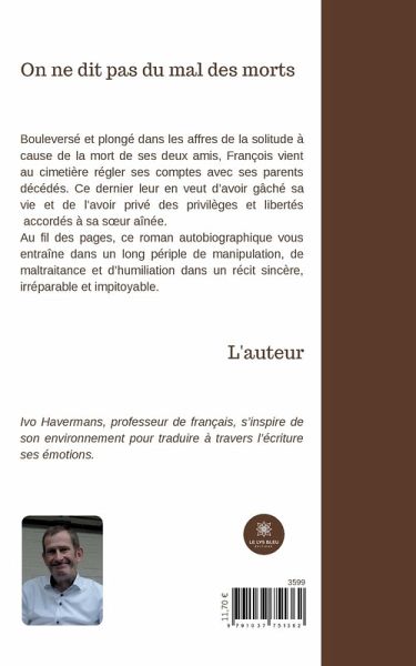Bouleversé et plongé dans les affres de la solitude à cause de la mort de ses deux amis, François vient au cimetière régler ses comptes avec ses parents décédés. Ce dernier leur en veut d¿avoir gâché sa vie et de l¿avoir privé des privilèges et libertés accordés à sa s¿ur aînée. Au fil des pages, ce roman autobiographique vous entraîne dans un long périple de manipulation, de maltraitance et d¿humiliation dans un récit sincère, irréparable et impitoyable.