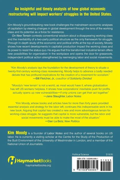 "Kim Moody is one of the leading intellectuals of the labor movement."-Robin D.G. Kelley, author of Race Rebels: Culture, Politics and the Black Working Class In his latest book, Kim Moody analyzes how recent changes in capitalism have altered both the composition of the working class and the economic and political ground on which it struggles. On New Terrain challenges conventional wisdom about a disappearing working class and the inevitability of a two-party political structure as the only framework for struggle. Through in-depth study of the economic and political shifts at the top of society, Moody shows how recent developments in capitalist production impact the working class and its power to resist the status quo. He argues that this transformed industrial terrain offers new possibilities for organization in the workplace and opens doors for grassroots, independent political action strengthened by reemerging labor and social movements. From the logistics revolution to the unprecedented concentration of business and wealth in the hands of the one percent, On New Terrain examines the impact of the current economic terrain on the working class in the United States. Looking beyond the clichés of precarity and the gig economy, Moody shows that the working class and its own self-activity are essential in the global battle against austerity. Kim Moody is author of In Solidarity: Essays on Working-Class Organization in the United States and U.S. Labor in Trouble and Transition.