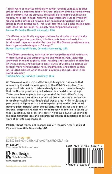 "The Obama presidency calls out for serious philosophical reflection. With intelligence and eloquence, wit and wisdom, Paul Taylor has answered. In this thoughtful, wide-ranging, and accessible meditation on the historical and normative significance of Obama, he pushes us to think more honestly about race, pragmatism, and empire at this unexpected moment when the most powerful political leader in the world is black."