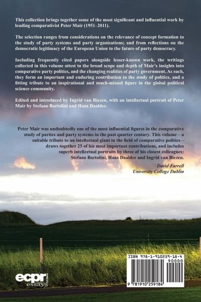 This collection brings together some of the most significant and influential work by leading comparativist Peter Mair (1951-2011). The selection ranges from considerations on the relevance of concept formation to the study of party systems and party organisations; and from reflections on the democratic legitimacy of the European Union to the future of party democracy. Including frequently cited papers alongside lesser-known work, the writings collected in this volume attest to the broad scope and depth of Mair's insights into comparative party politics, and the changing realities of party government. As such, they form an important and enduring contribution to the study of politics, and a fitting tribute to an inspirational and much-missed figure in the global political science community. Edited and introduced by Ingrid van Biezen, with an intellectual portrait of Peter Mair by Stefano Bartolini and Hans Daalder.
