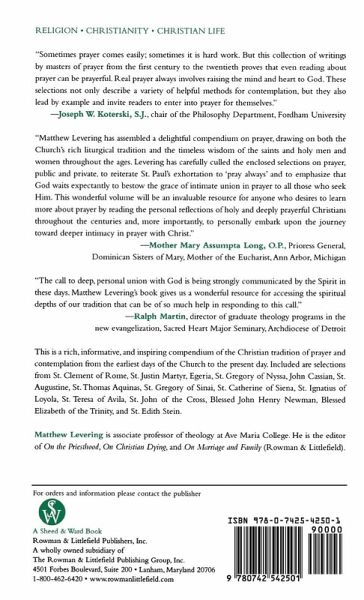 This is a rich, informative, and inspiring compendium of the Christian tradition of prayer and contemplation from the earliest days of the Church to the present day. Included are selections from St. Ignatius of Antioch, Justin Martyr, St. Clement of Rome, St. Gregory of Nyssa, John Cassian, St. Augustine, St. Gregory of Sinai, St. Thomas Aquinas, St. Bonaventure, St. Ignatius Loyola, St. Teresa of Avila, St. John of the Cross, St. Catherine of Siena, St. Julian of Norwich, Brother Lawrence, St. Francis de Sales, St. Vincent de Paul, Lancelot Andrewes, St. Elizabeth of the Trinity, St. Edith Stein, Dietrich Bonhoeffer, Hans Urs von Balthasar, and Pope John Paul II.