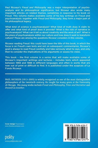 Ricoeur reading Freud: this could have been the title of this volume, in which the focus is on the actual work of Freud and not on subsequent commentaries. An open reading of intellectual integrity. A critical reading which shuns definitive positions. A reading to understand Freud.