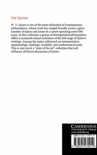 W. V. Quine is one of the most influential of contemporary philosophers, whose work has ranged broadly across a great number of topics and issues in a career spanning some fifty years. In this collection a group of distinguished philosophers offers a sustained critical evaluation of the full range of Quine's writings. Among the topics addressed are interpretation, epistemology, ontology, modality, and mathematical truth. This is very much a "state of the art" collection that will influence all future discussion of Quine.