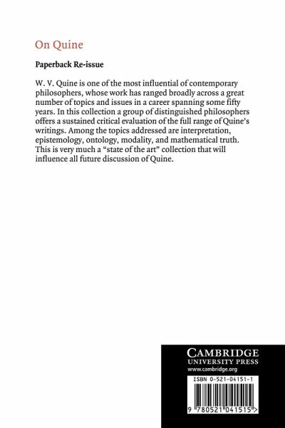 W. V. Quine is one of the most influential of contemporary philosophers, whose work has ranged broadly across a great number of topics and issues in a career spanning some fifty years. In this collection a group of distinguished philosophers offers a sustained critical evaluation of the full range of Quine's writings. Among the topics addressed are interpretation, epistemology, ontology, modality, and mathematical truth. This is very much a "state of the art" collection that will influence all future discussion of Quine.
