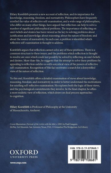 Hilary Kornblith presents a new account of mental reflection, and its importance for knowledge, reasoning, freedom, and normativity. He argues that reflection cannot solve the philosophical problems it has traditionally been thought to, and offers a more realistic, demystified view of its nature which draws on dual process approaches to cognition.
