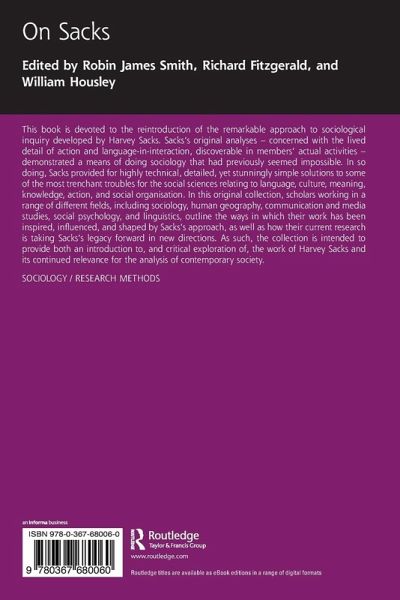 'With this volume, the editors have created a successful compilation of texts on aspects of Harvey Sacks' work that is unrivaled in terms of thematic and disciplinary breadth ... The authors manage, on the one hand, to present well-known and established topics and perspectives of Sacks' work and their continuations in different research contexts, and on the other hand to show less explored possibilities for connection.' - Dominik Gerst, Svenja Heuser and Maximilian Krug, Qualitative Social Research (translation)