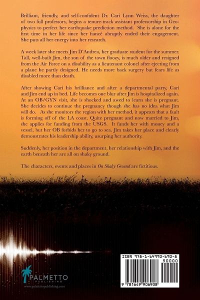 Brilliant, friendly, and self-confident Dr. Cari Lynn Weiss, the daughter of two full professors, begins a tenure-track assistant professorship in Geophysics. She is alone for the first time in her life because her fiancé abruptly ended their long-term engagement. She puts all her energy into her computer program to predict earthquakes. A week later she meets Jim D'Andrea, her graduate student for the summer. Tall, well-built Jim, the son of the town floozy, graduated from the Air Force Academy and rose quickly through the ranks, until Lt Colonel James 'Dandy' D'Andrea was badly injured ejecting from an experimental plane. He needs yet another surgery but doesn't ever plan to be operated on again. He's just passing time as a graduate student until the inevitable. After a department summer party Cari and Jim end up in bed. Three months later she is shocked to learn she is pregnant. As the earthquakes her method has predicted begin to occur, she becomes a tv geophysicist. Six months pregnant and now married to Jim, she receives a grant from the USGS to study the rift her method has predicted under the Pacific. To her consternation, her OB forbids her to go to sea on the research ship. Jim takes her place and clearly demonstrates his leadership ability. Suddenly, her position in the department, her relationship with Jim, and the earth beneath her are all on shaky ground.