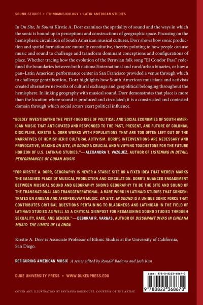 In On Site, In Sound Kirstie A. Dorr examines the spatiality of sound and the ways in which the sonic is bound up in perceptions and constructions of geographic space. Focusing on the hemispheric circulation of South American musical cultures, Dorr shows how sonic production and spatial formation are mutually constitutive, thereby pointing to how people can use music and sound to challenge and transform dominant conceptions and configurations of place. Whether tracing how the evolution of the Peruvian folk song "El Condor Pasa" redefined the boundaries between national/international and rural/urban, or how a pan-Latin American performance center in San Francisco provided a venue through which to challenge gentrification, Dorr highlights how South American musicians and activists created new and alternative networks of cultural exchange and geopolitical belonging throughout the hemisphere. In linking geography with musical sound, Dorr demonstrates that place is more than the location where sound is produced and circulated; it is a constructed and contested domain through which social actors exert political influence.