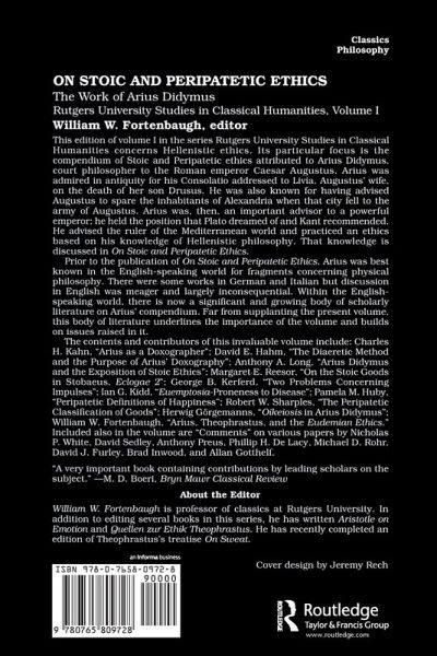 Providing the only full-length study of the compendium of Greek philosophy attributed to Arius Didymus, court philosopher to the Roman emperor Caesar Augustus, this volume elucidates Stoic and Peripatetic ethics for classicists and philosophers