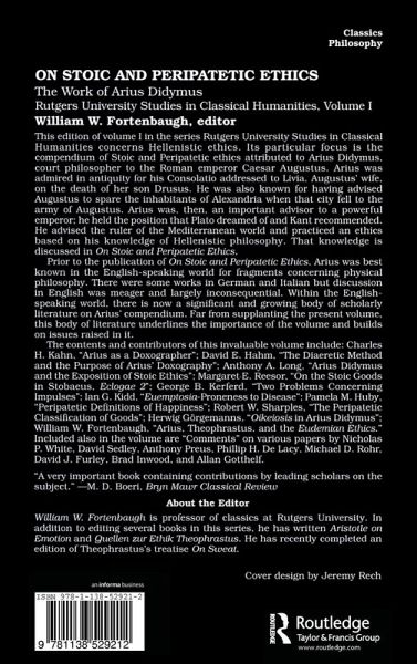 Providing the only full-length study of the compendium of Greek philosophy attributed to Arius Didymus, court philosopher to the Roman emperor Caesar Augustus, this volume elucidates Stoic and Peripatetic ethics for classicists and philosophers.
