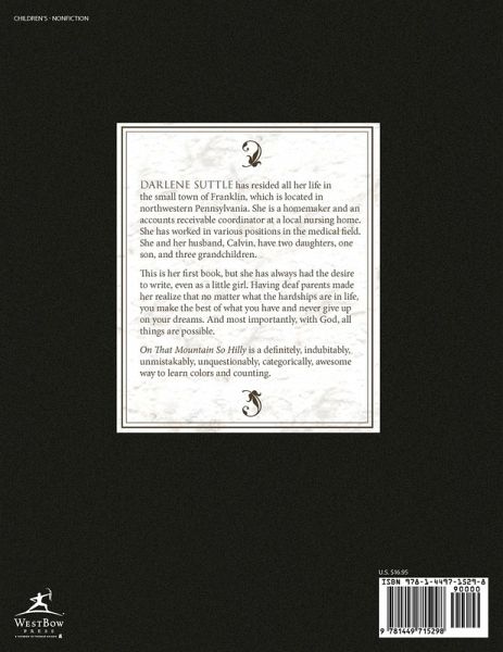 Darlene Suttle has resided all her life in the small town of Franklin, which is located in northwestern Pennsylvania. She is a homemaker and an accounts receivable coordinator at a local nursing home. She has worked in various positions in the medical field. She and her husband, Calvin, have two daughters, one son, and three grandchildren.