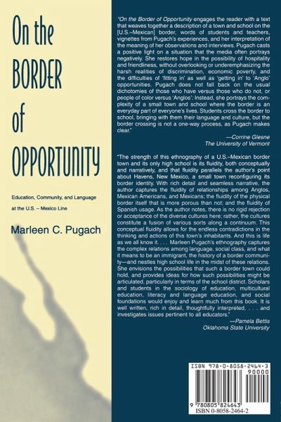 In 1993, the author set out to try and gain some understanding about school and community in Havens, New Mexico--a place where she had the opportunity to be immersed in border culture, where she could learn how the border figured into everyday life, and where she could pay uninterrupted attention to the issues as they occurred in the personal and professional lives of those who taught in and administered the schools--and in the lives of the students who studied there. This book offers an interpretation that is disciplined by the long hours, days, and months spent in Havens, and by the personal stance the author brings to the study of a place and its people. This book tells the story of Havens from the perspective of what it is, of the present in all of its complexity, and as a window on what might exist in the future in this border community. It begins with a description of Havens and its inevitable interdependence with its Mexican neighbors, followed by an introduction of three "cultural mediators"--two students and one teacher from Havens High School. Focusing on the relationship between the use of Spanish and English, the language landscape in the community and in the schools is laid out. This is followed by a specific description of the development of bilingual education programs in the district, and an introduction of the social structure of the high school, describing the students' interactions across cultural lines. The final chapter presents an alternative metaphor for thinking about the border and identifies markers of opportunity that already exist in Havens as it works toward defining what it means to be a bicultural and binational community.