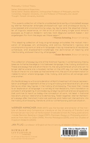 Werner Hamacher is Professor Emeritus of General and Comparative Literature at the University of Frankfurt and Emmanuel Levinas Chair at the European Graduate School. His many publications include iPremises: Essays on Philosophy and Literature from Kant to Celan (1999), Pleroma: Reading in Hegel (1997) and Minima Philologica (2015).