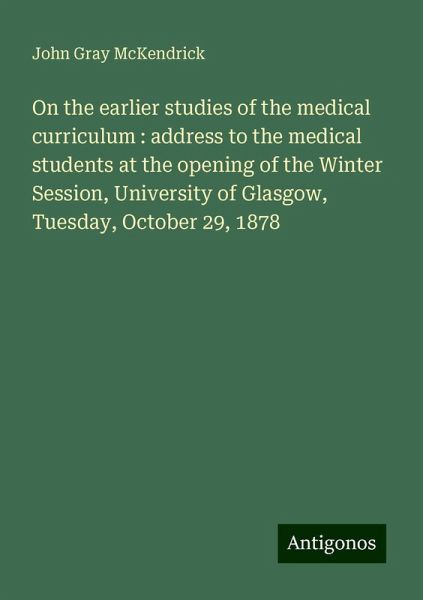 On the earlier studies of the medical curriculum : address to the medical students at the opening of the Winter Session, University of Glasgow, Tuesday, October 29, 1878 - Mckendrick, John Gray