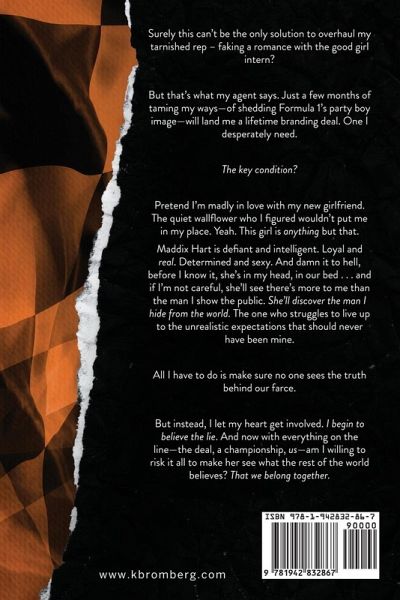 A spicy, only-one-bed Formula 1 romance from New York Times bestselling author, K. Bromberg. Surely this can't be the only solution to overhaul my tarnished rep - faking a romance with the good girl intern? But that's what my agent says. Just a few months of taming my ways-of shedding Formula 1's party boy image-will land me a lifetime branding deal. One I desperately need. The key condition? Pretend I'm madly in love with my new girlfriend. The quiet wallflower who I figured wouldn't put me in my place. Yeah. This girl is anything but that. Maddix Hart is defiant and intelligent. Loyal and real. Determined and sexy. And damn it to hell, before I know it, she's in my head, in our bed . . . and if I'm not careful, she'll see there's more to me than the man I show the public. She'll discover the man I hide from the world. The one who struggles to live up to the unrealistic expectations that should never have been mine. All I have to do is make sure no one sees the truth behind our farce. But instead, I let my heart get involved. I begin to believe the lie. And now with everything on the line-the deal, a championship, us-am I willing to risk it all to make her see what the rest of the world believes? That we belong together.