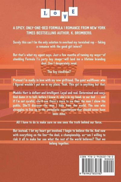 A spicy, only-one-bed Formula 1 romance from New York Times bestselling author, K. Bromberg. Surely this can't be the only solution to overhaul my tarnished rep - faking a romance with the good girl intern? But that's what my agent says. Just a few months of taming my ways-of shedding Formula 1's party boy image-will land me a lifetime branding deal. One I desperately need. The key condition? Pretend I'm madly in love with my new girlfriend. The quiet wallflower who I figured wouldn't put me in my place. Yeah. This girl is anything but that. Maddix Hart is defiant and intelligent. Loyal and real. Determined and sexy. And damn it to hell, before I know it, she's in my head, in our bed . . . and if I'm not careful, she'll see there's more to me than the man I show the public. She'll discover the man I hide from the world. The one who struggles to live up to the unrealistic expectations that should never have been mine. All I have to do is make sure no one sees the truth behind our farce. But instead, I let my heart get involved. I begin to believe the lie. And now with everything on the line-the deal, a championship, us-am I willing to risk it all to make her see what the rest of the world believes? That we belong together.