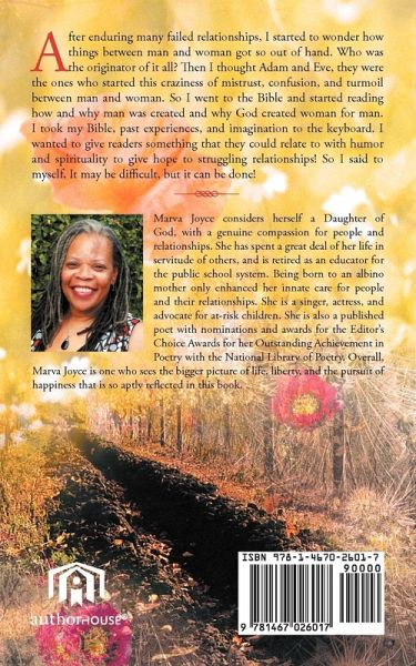 After enduring many failed relationships, I started to wonder how things between man and woman got so out of hand. Who was the originator of it all? Then I thought Adam and Eve, they were the ones who started this craziness of mistrust, confusion, and turmoil between man and woman. So I went to the Bible and started reading how and why man was created and why God created woman for man. I took my Bible, past experiences, and imagination to the keyboard. I wanted to give readers something that they could relate to with humor and spirituality to give hope to struggling relationships! So I said to myself, It may be difficult, but it can be done!