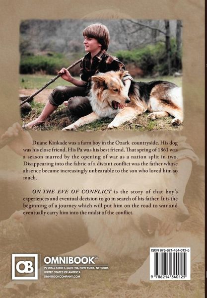 Duane Kinkade was a farm boy in the Ozark countryside. His dog was his close friend. His Pa was his best friend. That spring of 1861 was a season marred by the opening of wat as a nation split in two. Disappearing into the fabric of a distant conflict was the father whose absence became increasingly unbearable to the son who loved him so much. On the Eve of Conflict is the story of that boy's experiences and eventual decision to go in search of his father. It is the beginning of a journey which will put him on the road to war and eventually carry him into the midst of the conflict.