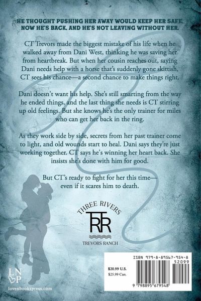 He thought pushing her away would keep her safe. Now he's back, and he's not leaving without her. CT Trevors made the biggest mistake of his life when he walked away from Dani West, thinking he was saving her from heartbreak. But when her cousin reaches out, saying Dani needs help with a horse that's suddenly gone skittish, CT sees his chance-a second chance to make things right. Dani doesn't want his help. She's still smarting from the way he ended things, and the last thing she needs is CT stirring up old feelings. But she knows he's the only trainer for miles who can get her back in the ring. As they work side by side, secrets from her past trainer come to light, and old wounds start to heal. Dani says they're just working together. CT says he's winning her heart back. She insists she's done with him for good. But CT's ready to fight for her this time-even if it scares him to death.
