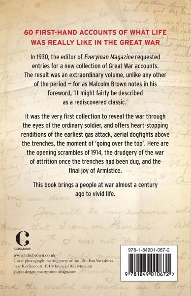 In 1930, the editor of Everyman Magazine requested entries for a new anthology of Great War accounts. The result was a revolutionary book unlike any other of the period; for as Malcolm Brown notes in his introduction 'I believe it might fairly be described as a rediscovered classic'.