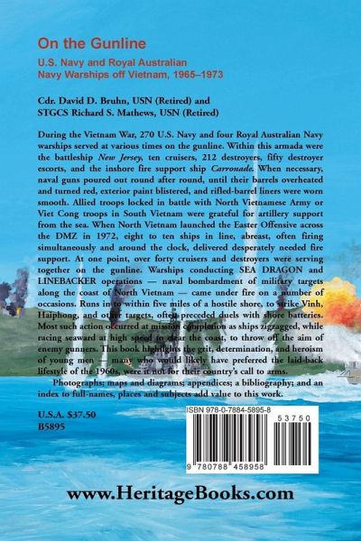 During the Vietnam War, 270 U.S. Navy and four Royal Australian Navy warships served at various times on the gunline. Within this armada were the battleship New Jersey, ten cruisers, 212 destroyers, fifty destroyer escorts, and the inshore fire support ship Carronade. When necessary, naval guns poured out round after round, until their barrels overheated and turned red, exterior paint blistered, and rifled-barrel liners were worn smooth. Allied troops locked in battle with North Vietnamese Army or Viet Cong troops in South Vietnam were grateful for artillery support from the sea. When North Vietnam launched the Easter Offensive across the DMZ in 1972, eight to ten ships in line, abreast, often firing simultaneously and around the clock, delivered desperately needed fire support. At one point, over forty cruisers and destroyers were serving together on the gunline. Warships conducting SEA DRAGON and LINEBACKER operations-naval bombardment of military targets along the coast of North Vietnam-came under fire on a number of occasions. Runs in to within five miles of a hostile shore, to strike Vinh, Haiphong, and other targets, often preceded duels with shore batteries. Most such action occurred at mission completion as ships zigzagged, while racing seaward at high speed to clear the coast, to throw off the aim of enemy gunners. This book highlights the grit, determination, and heroism of young men-many who would likely have preferred the laid-back lifestyle of the 1960s, were it not for their country's call to arms. Photographs; maps and diagrams; appendices; a bibliography; and an index to full-names, places and subjects add value to this work.