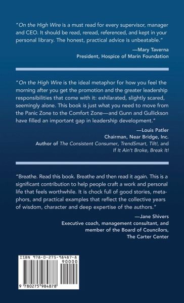 You've just been promoted and find yourself questioning your ability to pull off the new job. Now what? Virtually every leader recalls that make or break promotion when success depends on accessing inner capacities that lie just beyond prior experience. Taking on new challenges and responsibilities as a manager can be one of the most exhilarating and rewarding transitions in a businessperson's career. It can also be fraught with stress, self-doubt, isolation, and frustration. Bob Gunn and Betsy Gullickson draw on decades of executive coaching and human resource consulting experience to characterize the process of management promotion as walking the high wire-venturing into the unknown without a safety net. In this highly accessible guide, Gunn and Gullickson address the challenges and opportunities head-on and offer specific strategies and tactics for navigating the transition into leadership, delegation, conflict management, motivation, project management, and problem solving. Featuring thought-provoking questions and a listing of helpful resources, On the High Wire will engage and inspire new managers to become even more creative and effective leaders. At the heart of the book is the notion that productive and fulfilling management is not simply a collection of skills and techniques, but a mindset. Illustrating this theme through many powerful first-hand examples, the authors guide you toward achieving the clarity of vision and purpose that comes from being aware of context, attuned to the feelings that influence behavior, and respectful of multiple points of view. Featuring thought-provoking questions and a listing of helpful resources, On the High Wire will engage and inspire new managers to become even more creative and effective leaders.