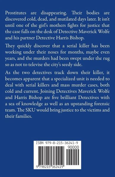 Prostitutes are disappearing. Their bodies are discovered cold, dead, and mutilated days later. It isn't until one of the girl's mothers fights for justice that the case falls on the desk of Detective Maverick Wolfe and his partner Detective Harris Bishop. They quickly discover that a serial killer has been working under their noses for months, maybe even years, and the murders had been swept under the rug so as not to televise the city's seedy side. As the two detectives track down their killer, it becomes apparent that a specialized unit is needed to deal with serial killers and mass murder cases, both cold and current. Joining Detectives Maverick Wolfe and Harris Bishop are five brilliant Detectives with a sea of knowledge as well as an upstanding forensic team. The SKU would bring justice to the victims and their families.
