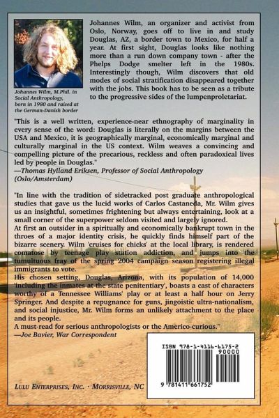 Johannes Wilm, an organizer and activist from Oslo, Norway, goes off to live in and study Douglas, AZ, a border town to Mexico, for half a year. At first sight, Douglas looks like nothing but a run down company town - after the Phelps Dodge smelter left in the 1980s. Interestingly though, Wilm discovers that old modes of social stratification disappeared together with the jobs. This book has to be seen as a tribute to the progressive sides of the lumpenproletariat. "This is a well written, experience-near ethnography of marginality in every sense of the word: Douglas is literally on the margins between the USA and Mexico, it is geographically marginal, economically marginal and culturally marginal in the US context. Wilm weaves a convincing and compelling picture of the precarious, reckless and often paradoxical lives led by people in Douglas." -Thomas Hylland Eriksen, Professor of Social Anthropology (Oslo/Amsterdam)
