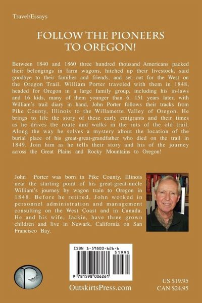 Follow the pioneers to Oregon! Between 1840 and 1860 three hundred thousand Americans packed their belongings in farm wagons, hitched up their livestock, said goodbye to their families and friends, and set out for the West on the Oregon Trail. William Porter traveled with them in 1848, headed for Oregon in a large family group, including his in-laws and 16 kids, many of them younger than 6. 151 years later, with William's trail diary in hand, John Porter follows their tracks from Pike County, Illinois to the Willamette Valley of Oregon. He brings to life the story of these early emigrants and their times as he drives the route and walks in the ruts of the old trail. Along the way he solves a mystery about the location of the burial place of his great-great-grandfather who died on the trail in 1849. Join him as he tells their story and his of the journey across the Great Plains and Rocky Mountains to Oregon!