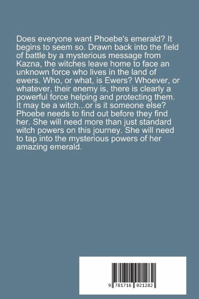 Volume 4 of the Leafy Tom series. Does everyone want Phoebe's emerald? It begins to seem so. Drawn back into the field of battle by a mysterious message from Kazna, the witches leave home to face an unknown force who lives in the land of ewers. Who, or what, is Ewers? Whoever, or whatever, their enemy is, there is clearly a powerful force helping and protecting them. It may be a witch...or is it someone else? Phoebe needs to find out before they find her. She will need more than just standard witch powers on this journey. She will need to tap into the mysterious powers of her amazing emerald.