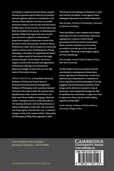 Drawing on the work of historians like Quentin Skinner, neo-republican theory offers a new perspective on the theory of justice and democracy. This is the first extended statement of a republican theory of democracy. It gives a fresh account of the rationale of democracy and the institutions that democracy requires. According to republican theory, we are free persons to the extent that we are protected and secured in the same fundamental choices, on the same public basis, as one another. But there is no public protection or security without a coercive state. Does this mean that any freedom we enjoy is a superficial good that presupposes a deeper, political form of subjection? Philip Pettit addresses this crucial question in On the People's Terms. He argues that state coercion will not involve individual subjection or domination insofar as we enjoy an equally shared form of control over those in power. This claim may seem utopian but it is supported by a realistic model of the institutions that might establish such democratic control. Beginning with a fresh articulation of republican ideas, Pettit develops a highly original account of the rationale of democracy, breathing new life into democratic theory.