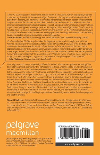 'Simon O' Sullivan does not merely offer another theory of the subject. Rather, he elegantly diagrams contemporary theoretical treatments of subjectification in order to grapple with the implications of subjectivity's adjacency and residuality. He never loses sight of the stakes for self-creation while examining the parameters of the relations between finitude-infinitude, desire-ethics, and subject-object that organize his engaging interpretations of Badiou, Foucault, Deleuze, Guattari, and Lacan. His commitment to practices that support the emergence of both strange and dissident subjectivities of the future fruitfully bring into the discussion paganism, shamanism, and animism. On the Production of Subjectivity is a fundamental reference point for questions bearing upon mental ecology, and a sourcebook for thinking beyond the diluted subjectivities available under semiocapital.' - Gary Genosko, Professor of Sociology and Canada Research Chair, Lakehead University, Canada 'On the Production of Subjectivity has taken the diagram to a new level of thought, and with that, renewed our philosophy of the subject in unprecedented fashion. Through analyses of the most important thinkers within the immanentist tradition (from Spinoza to Deleuze), as well as the most radical approaches to subjectivity (Lacan, Foucault, Guattari), this book not only tells us a new story concerning the emergence of self, but also shows us this in the most speculative and productive manner possible, following Bergson's adage that 'to speculate is to see'. With this work, O'Sullivan makes us see a new subject, and with the diagram, he gives us a new vision or 'non-philosophy' of thought itself.' - John Mullarkey, Kingston University, London, UK