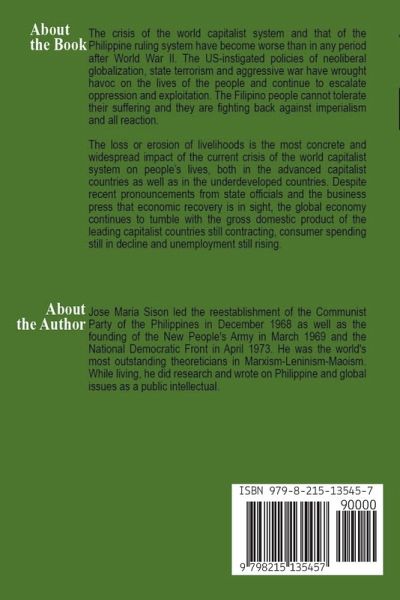 The crisis of the world capitalist system and that of the Philippine ruling system have become worse than in any period after World War II. The US-instigated policies of neoliberal globalization, state terrorism and aggressive war have wrought havoc on the lives of the people and continue to escalate oppression and exploitation. THe Filipino people cannot tolerate their suffering and they are fighting back against imperialism and all reaction. The loss or erosion of livelihoods is the most concrete and widespread impact of the current crisis of the world capitalist system on people's lives, both in the advanced capitalist countries as well as in the underdeveloped countries. Despite recent pronouncements from state officials and the business press that economic recovery is in sight, the global economy continues to tumble with the gross domestic product of the leading capitalist countries still contracting, consumer spending still in decline and unemployment still rising.