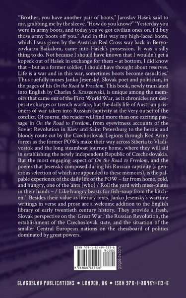 '"Brother, you have another pair of boots," Jaroslav Haek said to me, grabbing me by the sleeve. "How do you know?" "Yesterday you were in army boots, and today you've got civilian ones on. I'd buy those army boots off you." And in this way my high-laced boots, which I was given by the Austrian Red Cross way back in Beryozovka-za-Baikalom, came into Haek's possession. It was a silly thing to do. Not because I should have known that I wouldn't get a kopeck out of Haek in exchange for them - at bottom, I did know that - but as a former soldier, I should have thought about reserves. Life is a war and in this war, sometimes boots become casualties.' ¿Thus ruefully muses Janko Jesenský, Slovak poet and politician, in the pages of his On the Road to Freedom. This book, newly translated into English by Charles S. Kraszewski, is unique among the memoirs that came out of the First World War, as it chronicles not desperate charges or trench warfare, but the daily life of Austrian prisoners of war taken into Russian captivity at the very outset of the conflict. Of course, the reader will find more than one exciting passage in On the Road to Freedom, from eyewitness accounts of the Soviet Revolution in Kiev and Saint Petersburg to the heroic and bloody route cut by the Czechoslovak Legions through Red Army forces as the former POWs make their way across Siberia to Vladivostok and the long steamboat journey home, where they will aid in establishing the newly independent Republic of Czechoslovakia. But the most engaging aspect of On the Road to Freedom, and the poems that Jesenský composed during his Russian captivity (a generous selection of which are appended to these memoirs), is the palpable experience of the daily life of the POW - far from home, cold, and hungry, one of the 'ants [who] / Roil the yard with mess-plates in their hands - / Like hungry beasts for fish-soup from the kitchen.' Besides their value as literary texts, Janko Jesenský's wartime writings in verse and prose are a welcome addition to the English library of early twentieth century history. They provide a fresh, Slovak perspective on the 'Great War,' the Russian Revolution, the establishment of the Czechoslovak state, and the situation of the smaller Central European nations on the chessboard of politics dominated by great powers.