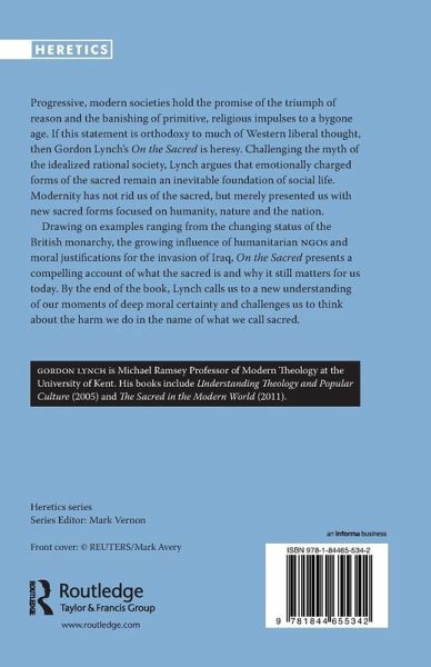 Progressive, modern societies hold the promise of the triumph of reason and the banishing of primitive, religious impulses to a bygone age. If this statement is orthodoxy to much of Western liberal thought, then Gordon Lynch's On the Sacred is heresy. Challenging the myth of the idealized rational society, Lynch argues that emotionally-charged forms of the sacred remain an inevitable foundation of social life. Modernity has not rid us of the sacred, but merely presented us with new sacred forms focused around humanity, nature and the nation. Drawing on examples from the changing status of the British monarchy, the growing influence of humanitarian NGOs and moral justifications for the invasion of Iraq, On the Sacred presents a compelling account of what the sacred is and why it still matters for us today. By the end of the book, Lynch calls us to a new understanding of our moments of deep moral certainty, challenging us to think about the harm we do in the name of what we call sacred.