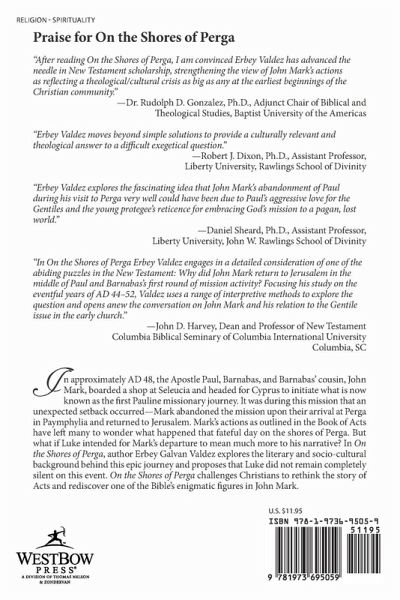 In approximately AD 48, the Apostle Paul, his coworker Barnabas, and Barnabas' cousin, John Mark, boarded a ship at Seleucia and headed for Cyprus to initiate what is now known as the first Pauline missionary journey. It was during this mission that an unexpected setback occurred. Mark left Paul and Barnabas shortly after their arrival at Perga in Pamphylia and returned to Jerusalem. Throughout church history, this incident in the Book of Acts has often been overlooked or dismissed as either a mysterious or insignificant event to the story of the nascent church. But what if Luke intended for Mark's departure to mean much more to his narrative? In On the Shores of Perga, author Erbey Galvan Valdez explores the literary and historical background behind this epic journey and discovers that Luke did not remain completely silent on this event. Was Mark's departure meant to serve as a catalyst for one of the greatest challenges facing the early church-the Jewish-Gentile controversy? On the Shores of Perga challenges Christians to rethink the story of Acts and rediscover one of the Bible's great leaders in John Mark.