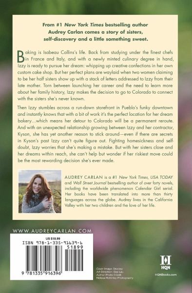 From #1 New York Times bestselling author Audrey Carlan comes a story of sisters, self-discovery and a little something sweet. Baking is Isabeau Collins's life. Back from studying under the finest chefs in France and Italy, and with a newly minted culinary degree in hand, Izzy is ready to pursue her dream: whipping up creative confections in her own custom cake shop. But her perfect plans are waylaid when two women claiming to be her half sisters show up with a stack of letters addressed to Izzy from their late mother. Torn between launching her career and the need to learn more about her family history, Izzy makes the decision to go to Colorado to connect with the sisters she's never known. Then Izzy stumbles across a run-down storefront in Pueblo's funky downtown and instantly knows that with a bit of work it's the perfect location for her dream bakery…which means her detour to Colorado will be a permanent reroute. And with an unexpected relationship growing between Izzy and her contractor, Kyson, she has yet another reason to stick around-even if there are secrets in Kyson's past Izzy can't quite figure out. Fighting homesickness and self-doubt, Izzy worries that she's making a mistake. But with her sisters close and her dreams within reach, she can't help but wonder if her riskiest move could be the most rewarding decision she's ever made. The Wish Series Book 1: What the Heart Wants Book 2: To Catch a Dream Book 3: On the Sweet Side
