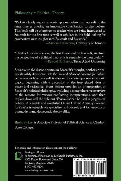 On the Use and Abuse of Foucault for Politics provides an accessible interpretation of Foucault's political philosophy, demonstrating how Foucault is relevant for contemporary democratic theory. Brent Pickett lays out an overview of Foucault's politics, including a comprehensive overview of the reasons for various conflicting interpretations, and then explores how well the different 'Foucaults' can be used in progressive politics and democratic theory.