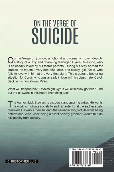 On the Verge of Suicide, a fictional and romantic novel, depicts a story of a lazy and charming teenager, Cyrus Celestino, who is colossally loved by his foster parents. During his stay abroad for studies, he meets a very beautiful, elite, and classy girl, Katie, who falls in love with him at the very first sight. This creates a bothering situation for Cyrus, who was already in love with his classmate, Carol, Back in his hometown, Milan. What will happen next? Which girl Cyrus will ultimately go with? Find out the answers in this heart-wrenching tale!