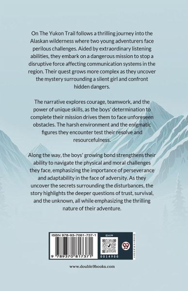 On The Yukon Trail follows a thrilling journey into the Alaskan wilderness where two young adventurers face perilous challenges. Aided by extraordinary listening abilities, they embark on a dangerous mission to stop a disruptive force affecting communication systems in the region. Their quest grows more complex as they uncover the mystery surrounding a silent girl and confront hidden dangers. The narrative explores courage, teamwork, and the power of unique skills, as the boys' determination to complete their mission drives them to face unforeseen obstacles. The harsh environment and the enigmatic figures they encounter test their resolve and resourcefulness. Along the way, the boys' growing bond strengthens their ability to navigate the physical and moral challenges they face, emphasizing the importance of perseverance and adaptability in the face of adversity. As they uncover the secrets surrounding the disturbances, the story highlights the deeper questions of trust, survival, and the unknown, all while emphasizing the thrilling nature of their adventure.