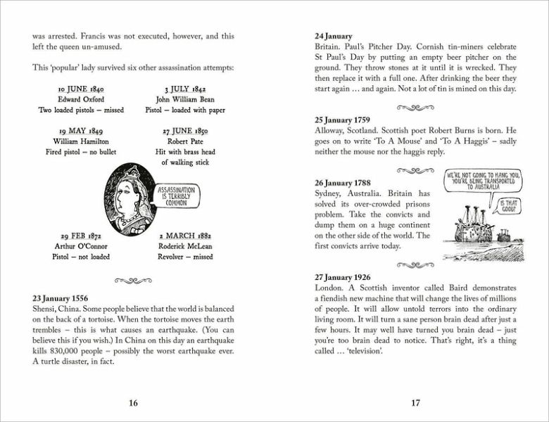 On This Horrible Day in History takes 365 very ordinary days andasks, 'What's the VERY worst that could happen?'Jam-packed with Horrible facts for every single day of the year,this hilariously Horrible book is the perfect gift for fans of historyand fans of the horrible, ancient or not-so ancient.