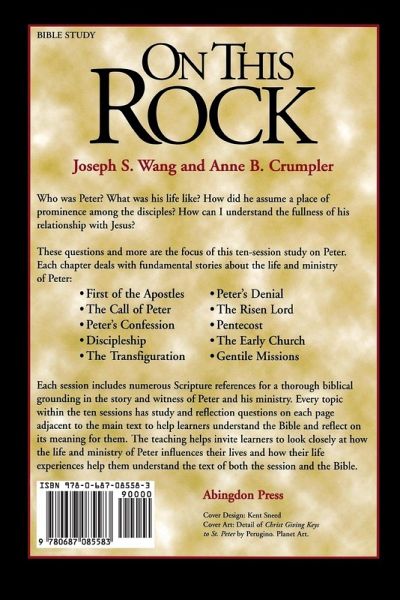 Help adults better understand Peter's life and ministry with this ten-session study. Each chapter deals with fundamental stories about Peter, with numerous Scripture references for a thorough theological, historical, and biblical grounding in the life of Peter. For each topic within the ten sessions, study and reflection questions are included to help learners understand the Bible and reflect on its meaning for them. Teaching/study helps are conveniently located on each page adjacent to the main text. Chapters are: *First of the Apostles * Call of Peter * Peter's Confession * Discipleship * The Transfiguration * Peter's Denial * The Risen Lord * Pentecost * The Early Church * The Gentile Missions