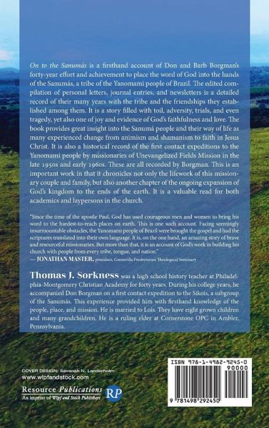 On to the Sanumas is a firsthand account of Don and Barb Borgman's forty-year effort and achievement to place the word of God into the hands of the Sanumas, a tribe of the Yanomami people of Brazil. The edited compilation of personal letters, journal entries, and newsletters are a detailed record of their many years with the tribe and the friendships they established among them. It is a story filled with toil, adversity, trials, and even tragedy, yet also one of joy and evidence of God's faithfulness and love. The book provides great insight into the Sanuma people and their way of life as many experienced change from animism and shamanism to faith in Jesus Christ. It is also a historical record of the first contact expeditions to the Yanomami people by missionaries of Unevangelized Fields Mission in the late 1950s and early 1960s. These are all recorded by Borgman. This is an important work in that it chronicles not only the lifework of this missionary couple and family, but also another chapter of the ongoing expansion of God's kingdom to the ends of the earth. It is a valuable read for both academics and laypersons in the church.