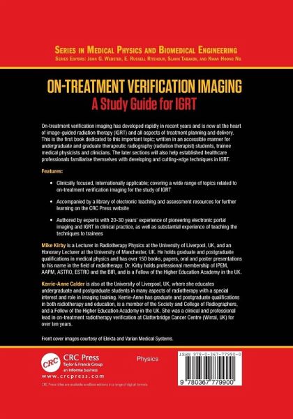 On-treatment verification imaging has developed rapidly in recent years and is now at the heart of image-guided radiation therapy (IGRT) and all aspects of radiotherapy planning and treatment delivery. This is the first book dedicated to just this important topic, which is written in an accessible manner for undergraduate and graduate therapeutic radiography (radiation therapist) students and trainee medical physicists and clinicians. The later sections of the book will also help established medical physicists, therapeutic radiographers, and radiation therapists familiarise themselves with developing and cutting-edge techniques in IGRT. Features: Clinically focused and internationally applicable; covering a wide range of topics related to on-treatment verification imaging for the study of IGRT Accompanied by a library of electronic teaching and assessment resources for further learning and understanding Authored by experts in the field with over 18 years' experience of pioneering the original forms of on-treatment verification imaging in radiotherapy (electronic portal imaging) in clinical practice, as well as substantial experience of teaching the techniques to trainees