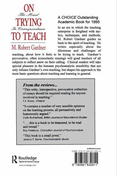 In an era in which the teaching enterprise is freighted with tactics, techniques, and methods, M. Robert Gardner guides us back to the spirit of teaching. He writes especially about the dilemmas and challenges of teaching, about how it feels to be trying to teach. Gardner's provocative, often iconoclastic musings will goad teachers of all subjects to reflect anew on their calling. Clinical readers will take special pleasure in the humane psychoanalytic sensibility that not only infuses Gardner's own teaching, but shapes his approach to the most basic questions about teaching and learning in general.