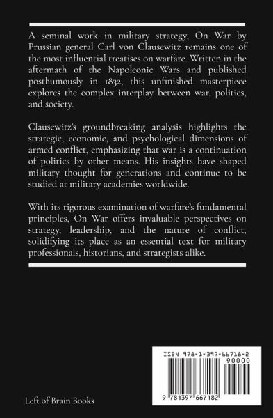 A seminal work in military strategy, On War by Prussian general Carl von Clausewitz remains one of the most influential treatises on warfare. Written in the aftermath of the Napoleonic Wars and published posthumously in 1832, this unfinished masterpiece explores the complex interplay between war, politics, and society. Clausewitz's groundbreaking analysis highlights the strategic, economic, and psychological dimensions of armed conflict, emphasizing that war is a continuation of politics by other means. His insights have shaped military thought for generations and continue to be studied at military academies worldwide. With its rigorous examination of warfare's fundamental principles, On War offers invaluable perspectives on strategy, leadership, and the nature of conflict, solidifying its place as an essential text for military professionals, historians, and strategists alike.